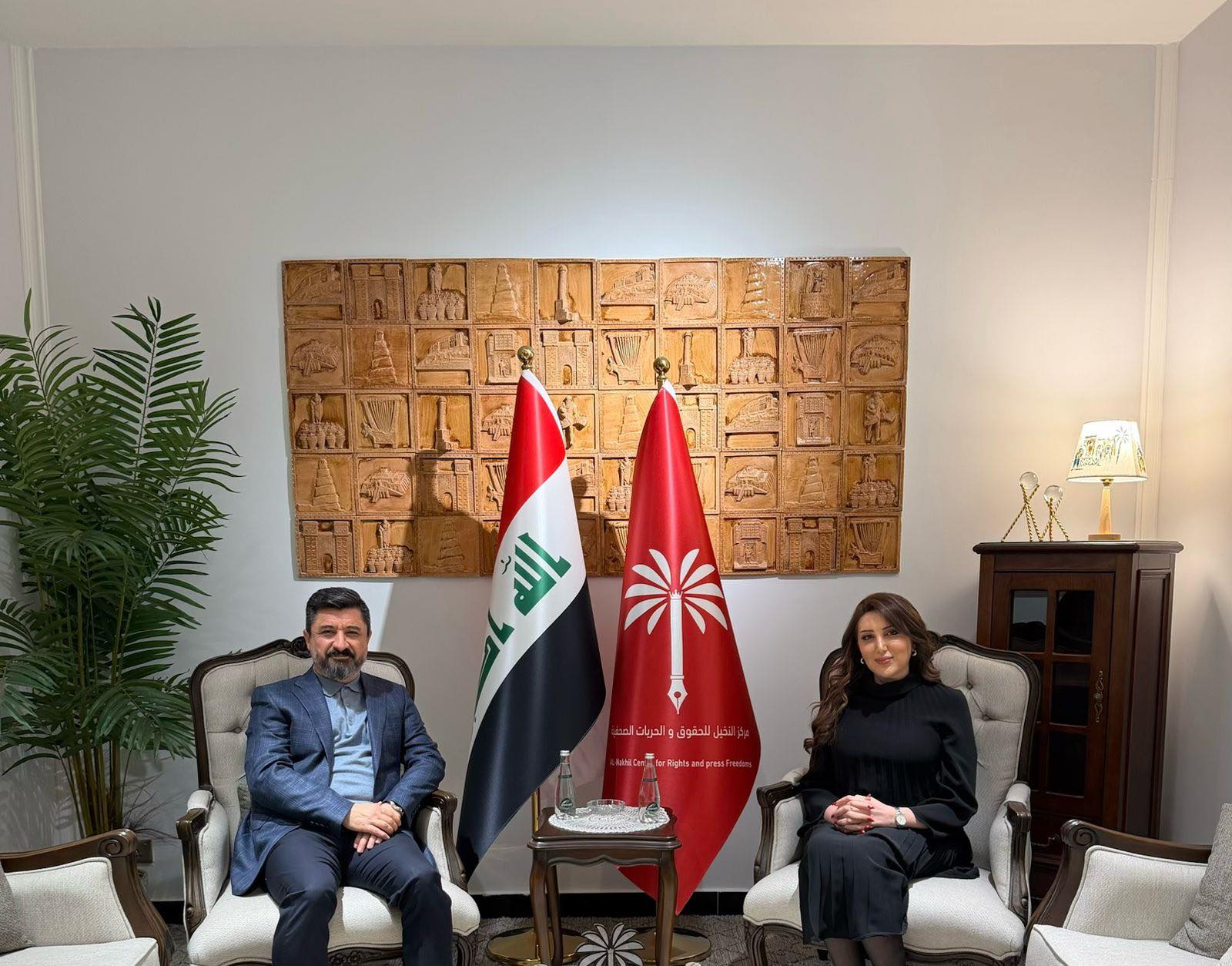 استقبلت رئيسة مركز النخيل للحقوق والحريات الصحفية، زينب ربيع، في مقر المركز، وزير العدل خالد شواني، في زيارة ركزت على بحث ملفات الحقوق المدنية وتعزيز مبادئ العدالة وسيادة القانون في العراق.