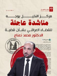 وجه مركز النخيل للحقوق والحريات الصحفية، مناشدة عاجلة إلى القضاء العراقي للتدخل في قضية المحلل السياسي الدكتور محمد نعناع، معرباً عن قلقه البالغ من استغلال “حق التقاضي” للتضييق على حرية الرأي والتعبير.